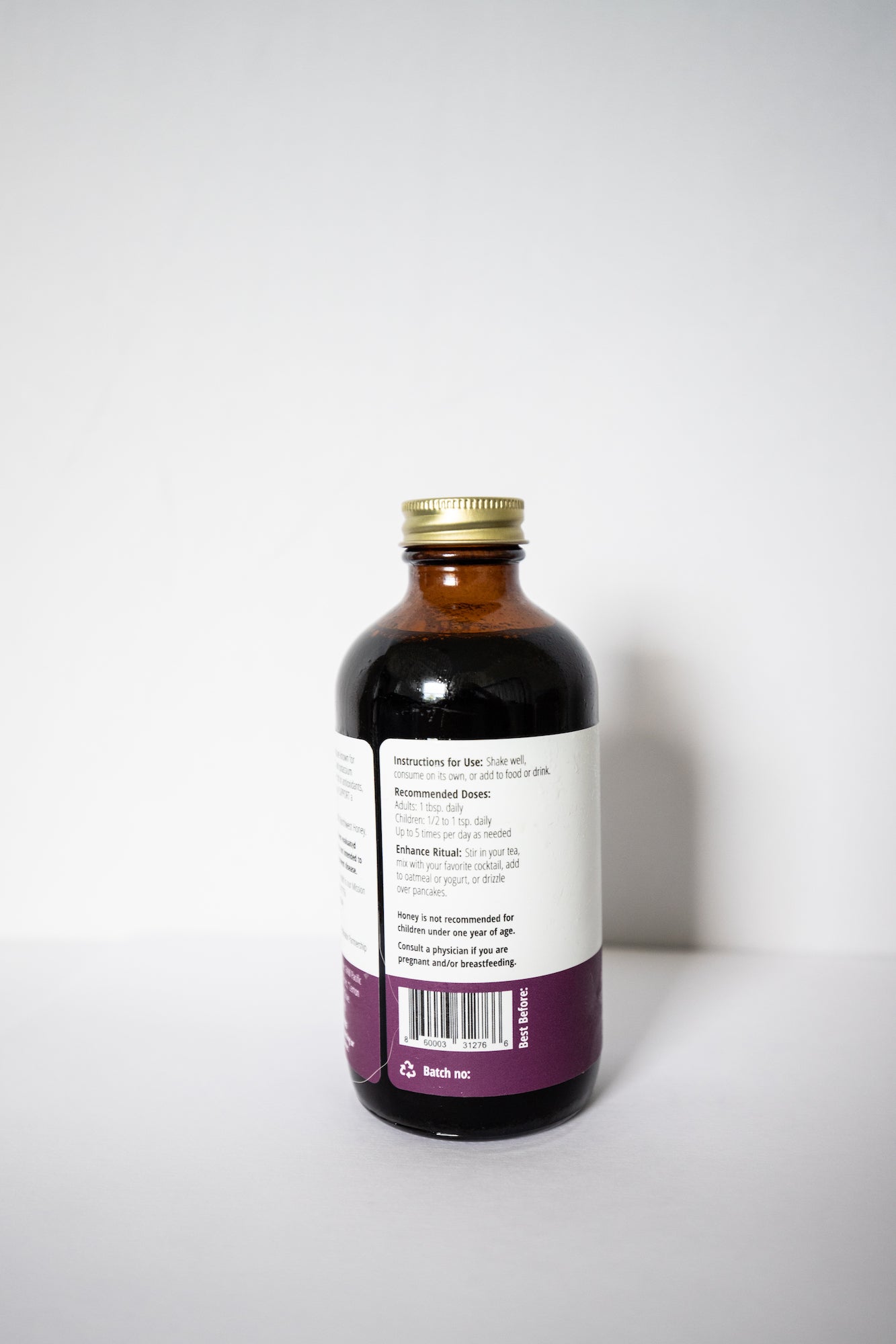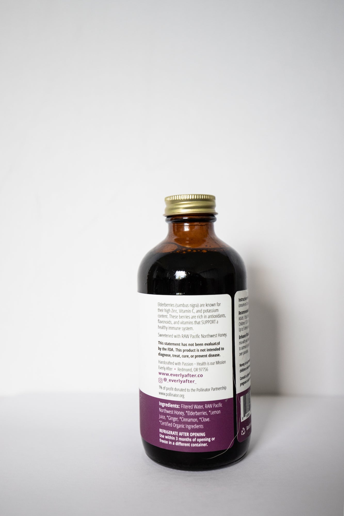 Filtered Water, Local Honey, Organic Elderberries, Organic Lemon Juice, Organic Cinnamon, Organic Ginger, Organic Cloves.