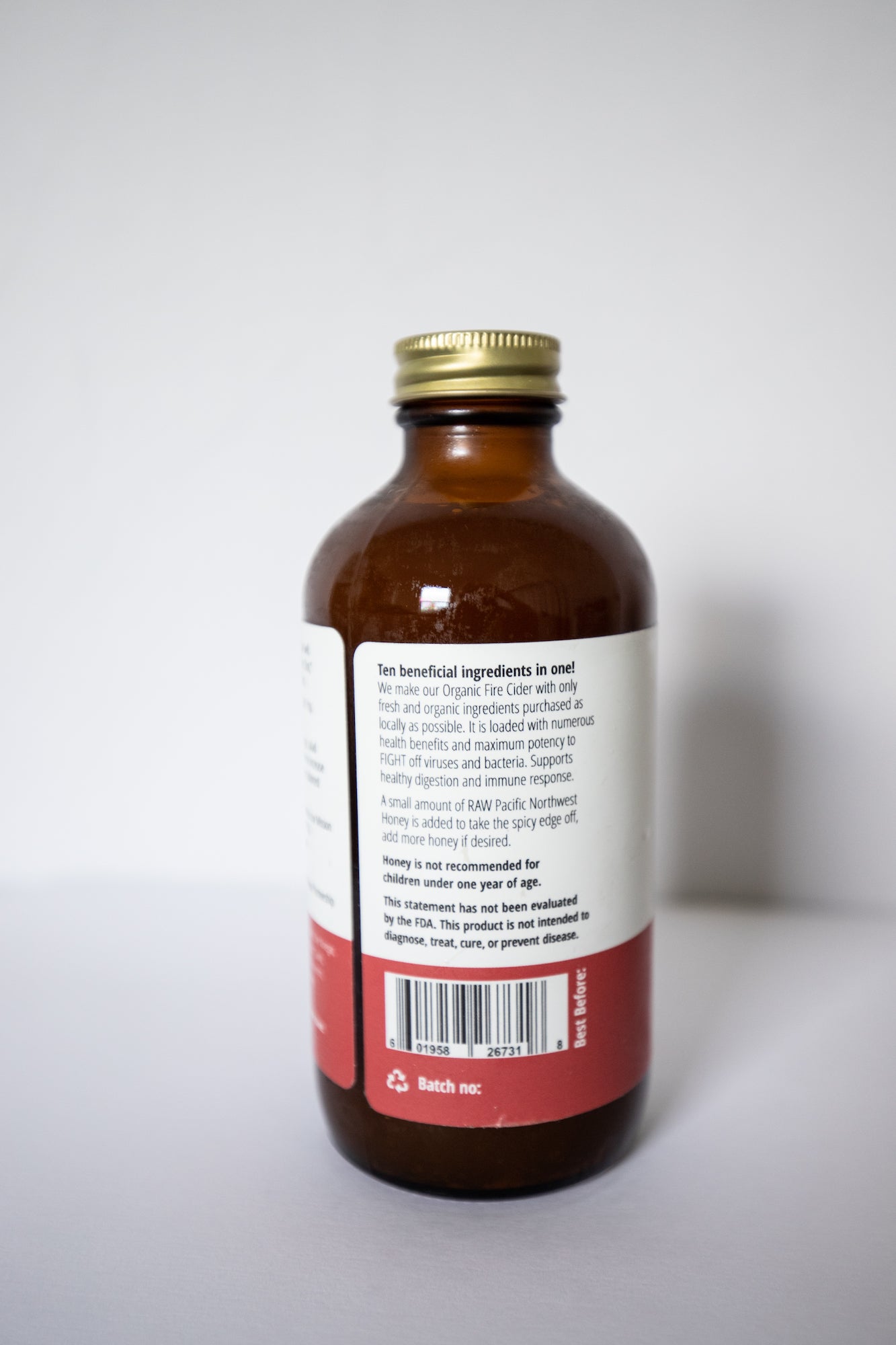 What is Fire Cider? Fire Cider is an herbal tonic (nicknamed "The Invincibility Shot") that’s used to boost immunity, help with digestion, metabolism, and so much more! This blend of fiery herbs and roots is steeped for 4-6 weeks in organic apple cider vinegar (ACV). The uses and benefits are ENDLESS!